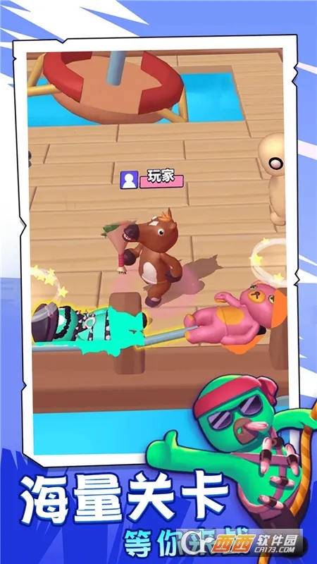 3、支持在线联机大乱斗,在奇特地点参与小人混战,使用道具和陷阱击败对手,享受魔性对决。