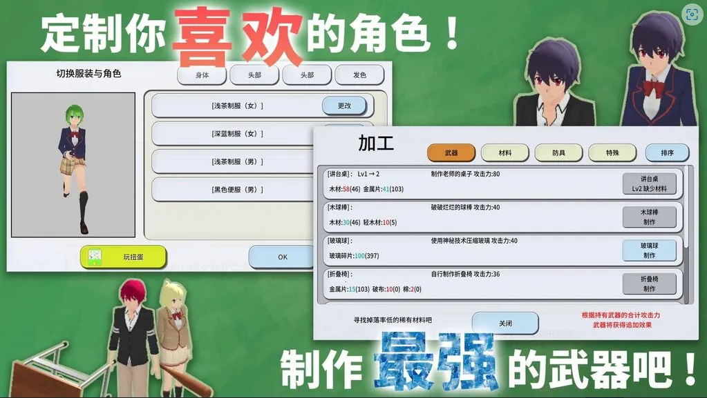 2、武器制作:通过破坏收集素材,合成制作各种武器工具,提升破坏能力与闯关效率。