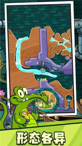 3、丰富关卡场景:拥有10个主题章节,超过200个关卡,还有下水道肥皂工厂和海滩等全新场景,每个场景都有特色及故事。