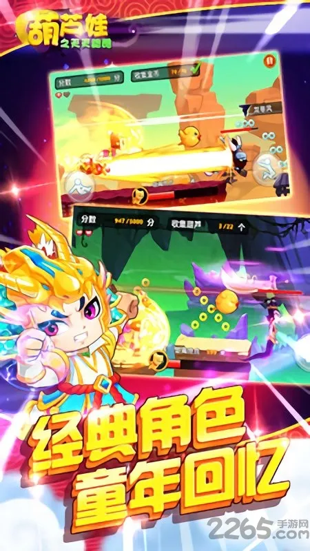 1、以经典动画为主题,重现七个葫芦娃可爱形象,玩家操控其完成跑酷挑战。