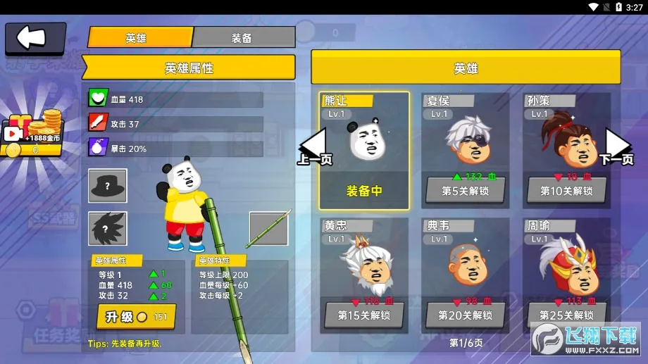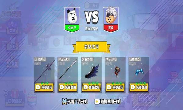 3、包含多种英雄角色和装备选择,每局时间短。
