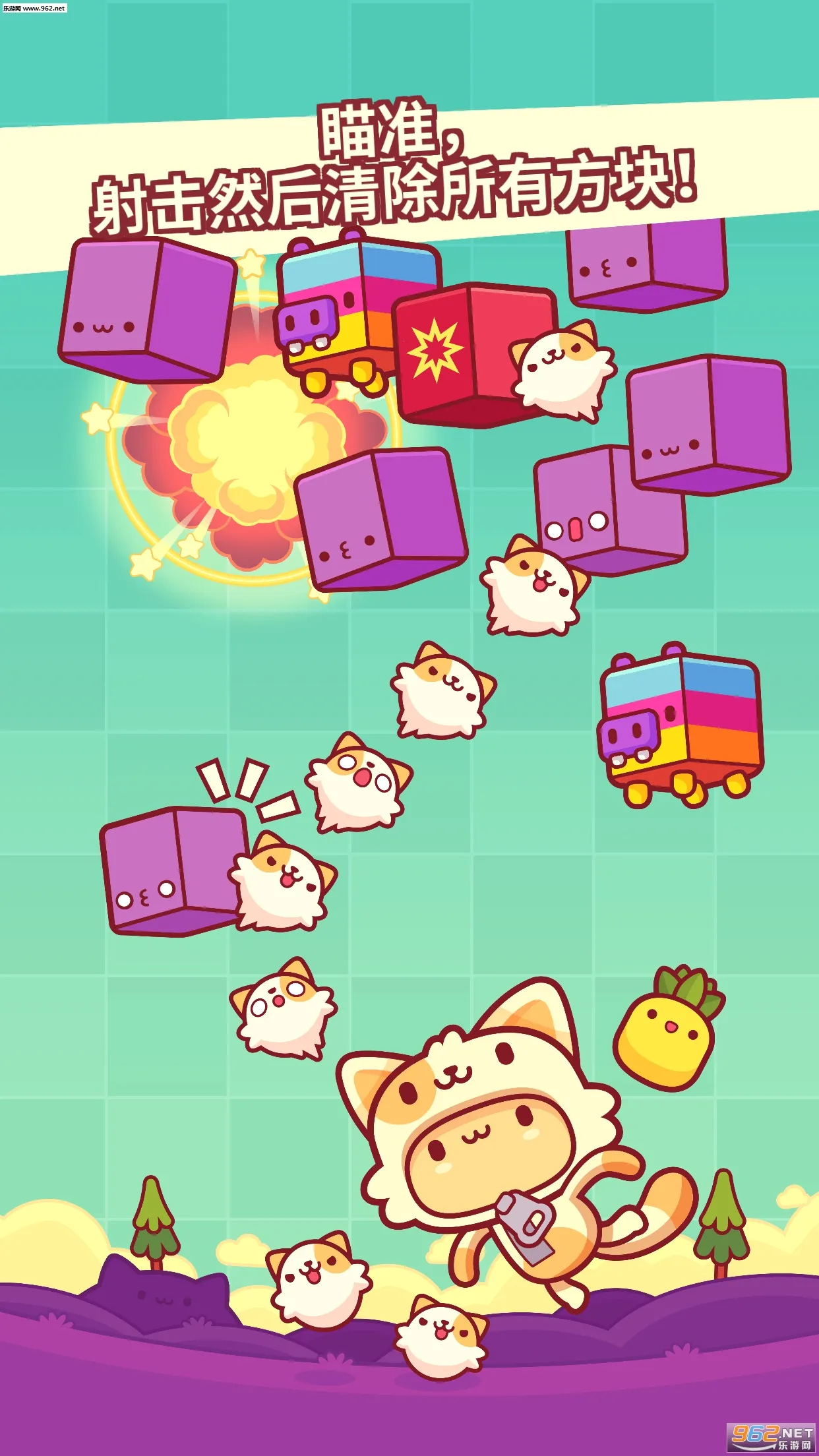 1. 操控可爱皮皮猫与邪恶方块博士战斗,打击方块,参与拯救计划。