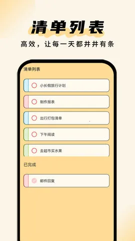 清单助手是一款助力自律习惯养成的清单管理工具。能制定日常事务计划,支持多方式记录与闹钟提醒。可进行任务分类、目标拆分,还有思维导图等功能,界面极简,适用于学生和上班族,助您高效管理事务、提升效率。
