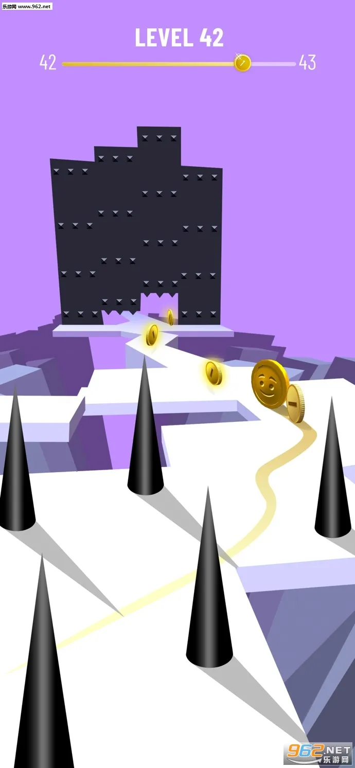 1. 物理平衡玩法:硬币滚动受重力影响,左右滑动精确控制倾斜角度,过弯时惯性难掌控,操作上限高,通关有成就感。