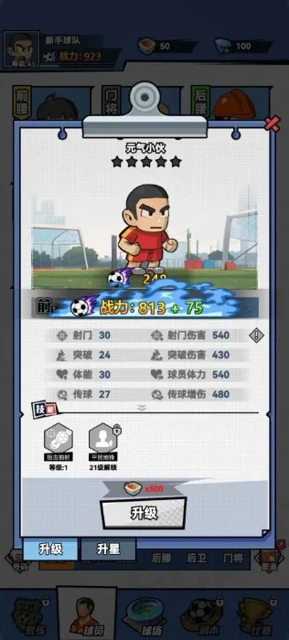 4、查看球员属性,开启足球比赛征程