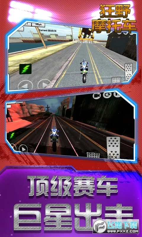 狂野摩托车是一款摩托竞速闯关游戏,有多样地图场景。玩家控制摩托完成特技操作,挑战多种障碍。游戏考验技巧与灵活性,玩法经典有趣,还有全新玩法、炫酷特效与精美画面,可收集金币道具,享受驾驶乐趣。
