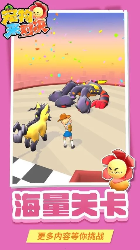 游戏中汇聚了造型各异不同属性技能的可爱宠物,像憨厚小猪、温顺牛羊、搞怪螃蟹与食人花等,玩家可挑选适合伙伴迎接趣味对决。