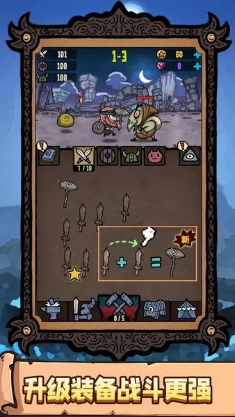 2、独特的合成玩法:经典的合成玩法元素结合,所有装备都能通过合成升级,相同装备组合就能获得更加强大的作战能力,玩家还可将同属性武器合成强大装备。