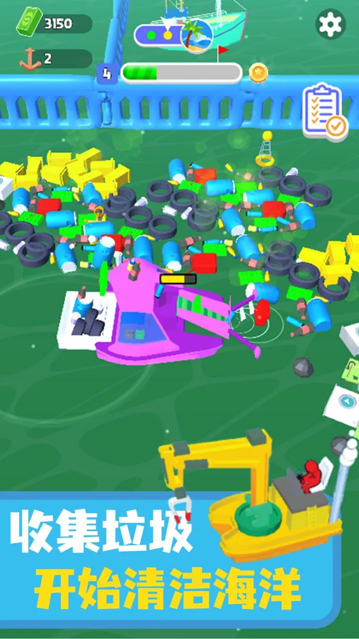 1、扮演海洋清洁工,清理海底垃圾和废弃物,这是游戏的核心玩法。玩家需操控机器,利用捕鱼网、铲子等工具,避开海洋生物,完成清洁任务。