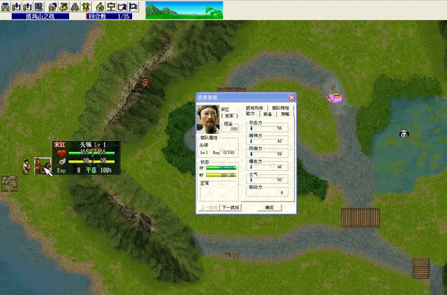 2. 战斗采用传统战棋策略,梁山好汉皆为可使用的棋子,每移动一次,攻击范围内有敌人即可攻击一次,击败敌人获属性点,可在科技树上点天赋。