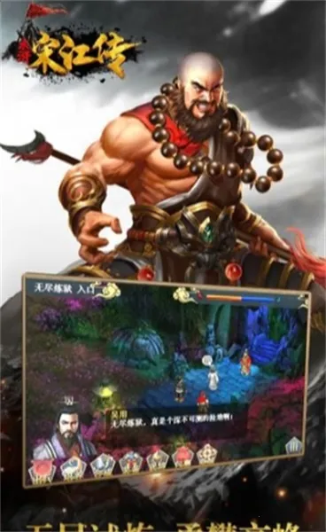4、以水浒梁山故事题材,率梁山豪杰对抗暴政邪恶,画面匠心苛造似电影级,有百位水浒武将,技能多样,战术变换无限。