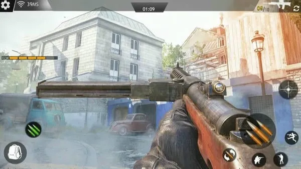 游戏高度还原二战战场,呈现逼真的战争画面,包括各种强大的现代化武器,让玩家仿佛置身于真实的二战场景中。