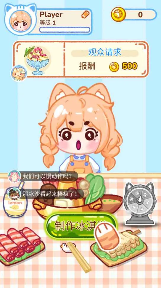 2、在游戏里,可制作多样甜品美食,通过直播提升知名度与人气,吸引更多顾客。