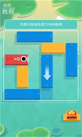 2、游戏玩法类似华容道,玩家需按木块长度方向移动小木块,帮助被困的小红鱼逃出困境,操作简单易上手。