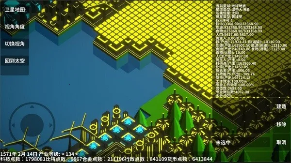 2、游戏有诸多玩法,如开局布局风电、矿井、农场等建筑,后续铺满铁矿、升级科技、平衡产能,还能上天探索新星球。