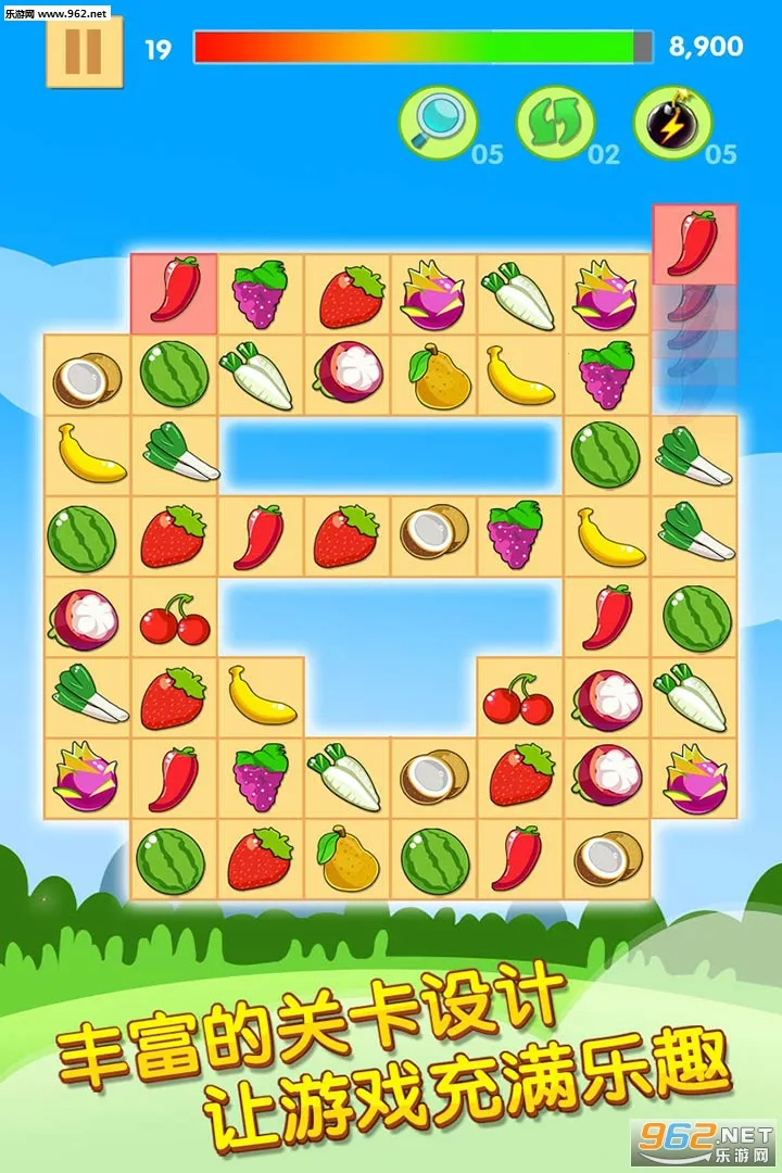 开心水果连连看2是全球热门经典连连看消除手游,延续经典玩法,加入全新模式关卡。果蔬题材画面甜美,玩法简单,连线消除同色水果。提供五大模式超千关,适配多设备,道具助通关,快来体验!