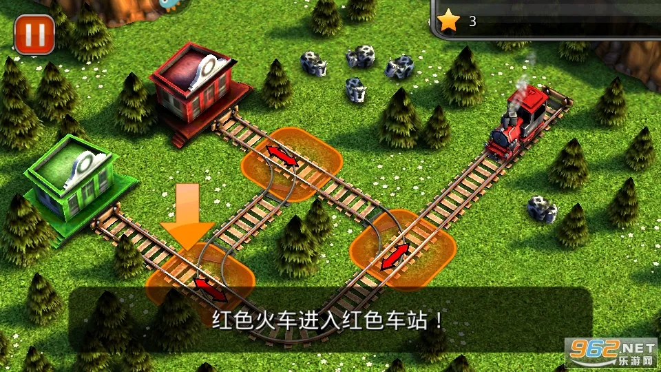 1. 操作直观简单:入门设有指引教程,轻触轨道连接处红色箭头就能改变火车行进路径,把对应颜色列车导入同色房屋即可。