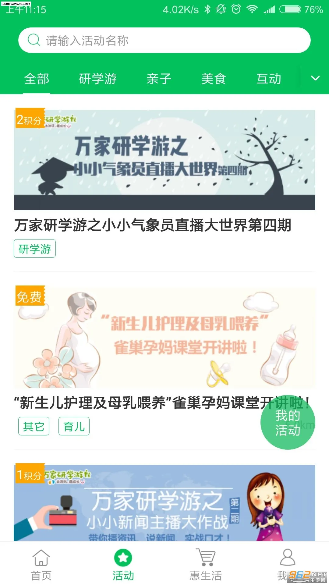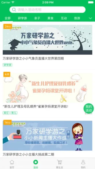2、丰富活动版块:包含亲子趣玩、生鲜电商、美食休闲等活动版块,以本地居民生活需求为核心,有多种亲子、福利活动。