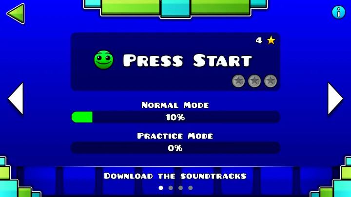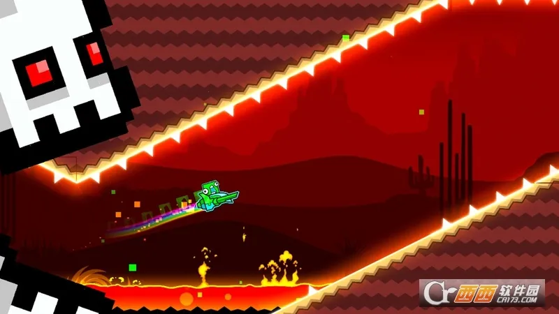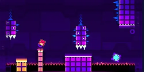 1、操控几何方块冒险:玩家在游戏里控制几何方块,点击屏幕实现跳跃冲刺,穿梭于多样关卡。