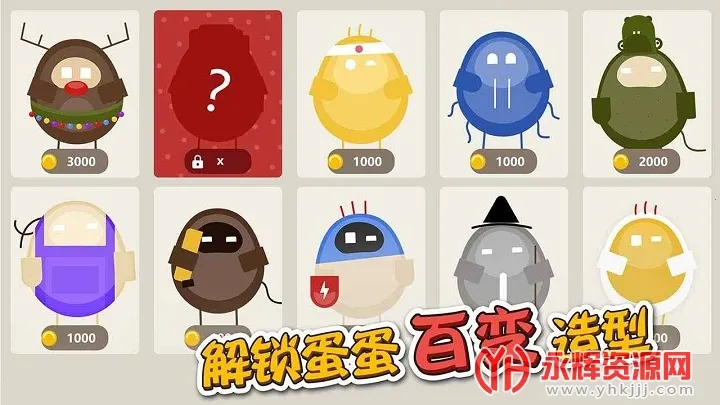 2. 玩家能通过收集金币强化蛋蛋能力,解锁从呆萌到狂暴的多种华丽造型皮肤,满足个性化需求和收集欲望。