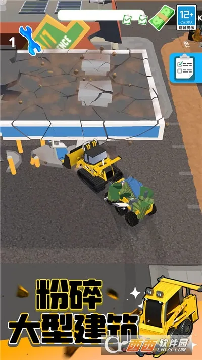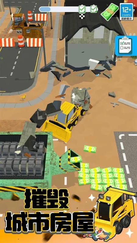 2. 可轻松控制推土机穿梭城市进行拆迁,还能解锁升级多种拆迁载具。
