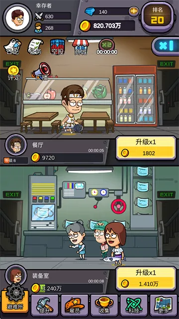 3、升级避难所,提升赚钱速度,打造最强基地。