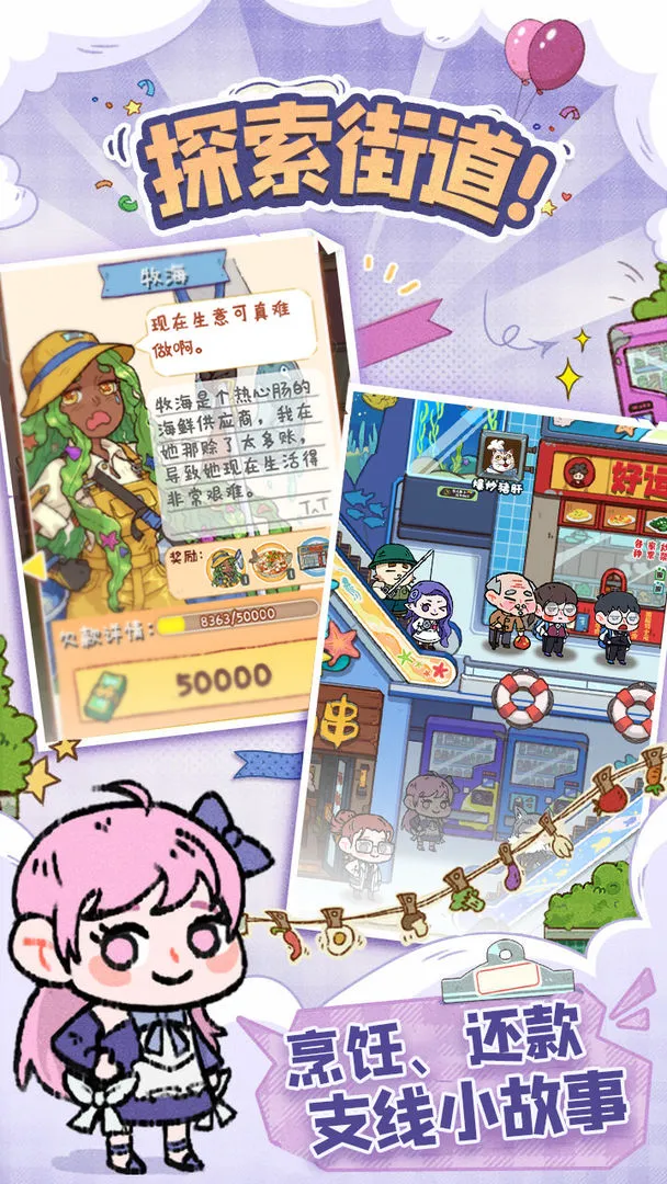 4. 进行基建玩法,建设多种店铺,装扮街道,完成主线支线任务。