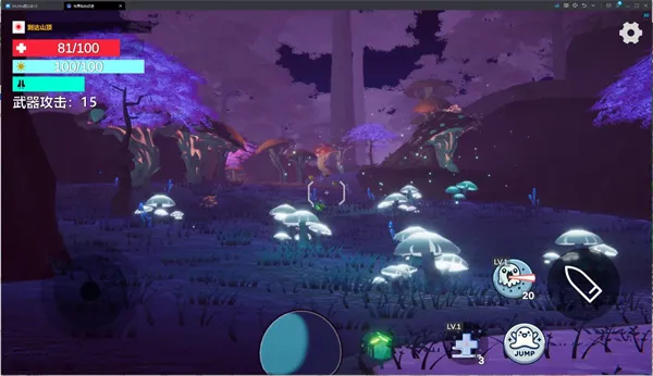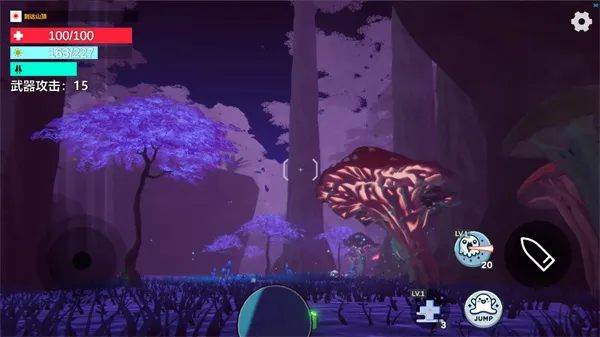 玩法很丰富,完成用户协议确认后点击开始,用左右分区控制角色行动。在广阔地图中自由探索,点击发射按钮自动攻击沿途敌人。查看左上角任务提示,击败怪物向山顶目标推进。收集场景中的光点恢复能量,利用气能快速滑行移动。