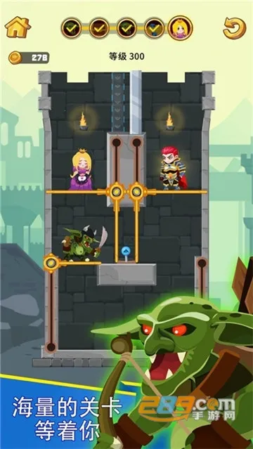 如果你喜欢冒险解谜类游戏,那英雄救援绝对值得一试!在这款游戏里,你将扮演勇士,通过思维和指尖操作机关障碍,为英雄开辟安全逃离路线。游戏亮点满满,有几十个精心设计的地牢关卡,布局各异,通关任务要求也不同。英雄角色与怪物位置不断变化,还有很多巧妙机关障碍物。操作简单,旋动阻隔杆就能改变自己或敌人位置。它结合物理原理,极具挑战性,每个关卡都带来新挑战,还有落石、水火、地刺等新陷阱元素。玩法上要多动脑避开危险,利用物理原理和道具通关。能训练大脑,体验多种游戏方式,成千上万个关卡设计让可玩性超强。快来下载,开启冒险解谜之旅,成为拯救公主、获取宝藏的英雄吧!