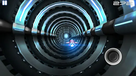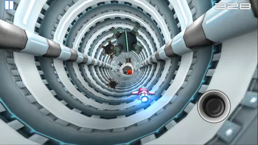 玩法简单易上手,通过屏幕右下方虚拟按键控制飞船飞行,躲避障碍物,随着飞行距离增长速度加快,考验玩家注意力、反应力和手速。