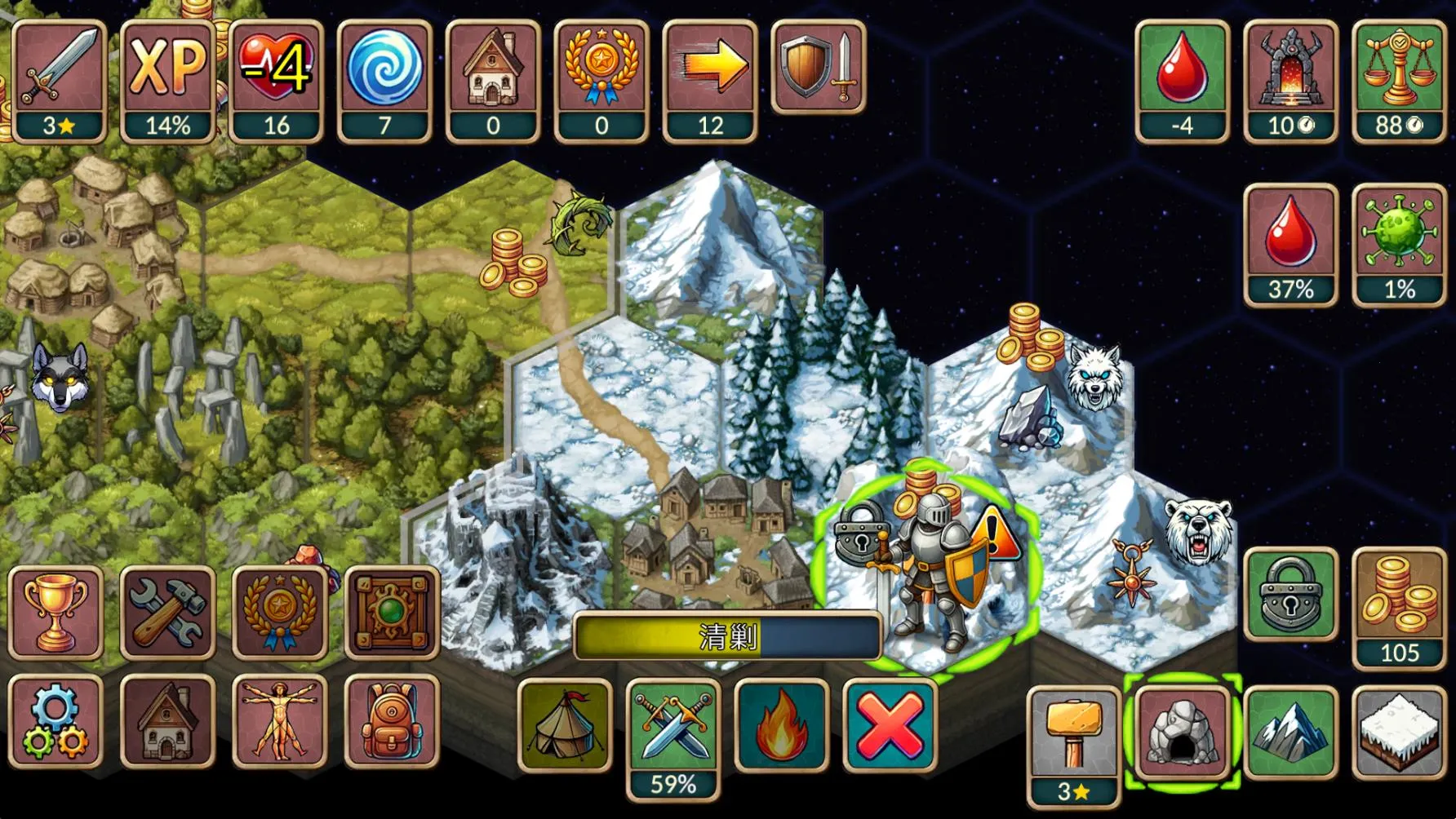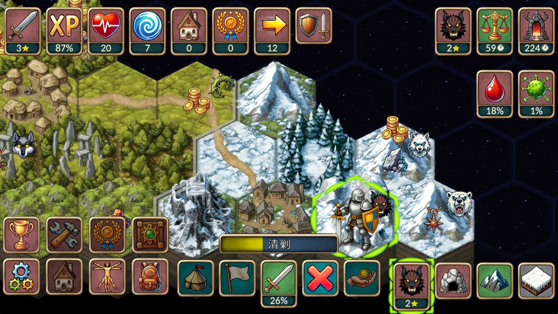 2. 关键抉择影响走向,玩家需在冒险进入战争迷雾、稳妥清理安全区域等多种情境下做出关键选择。