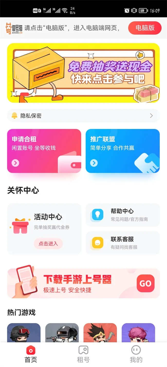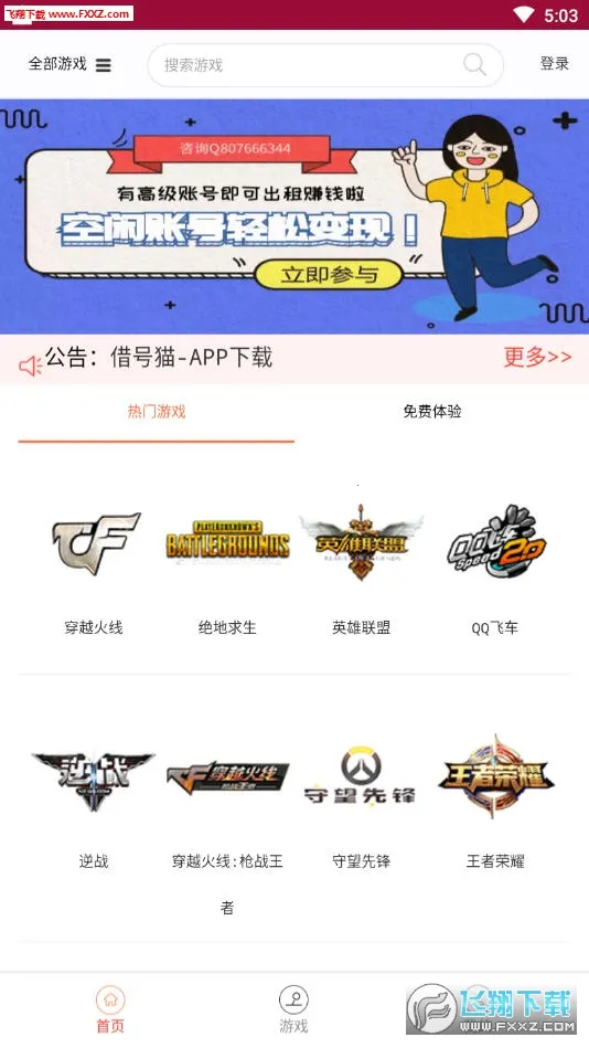 借号猫app是济南市快推网络科技有限公司打造的游戏账号租赁平台,覆盖百余款热门游戏,提供海量账号。有新人福利,支付便捷,操作简单。具备安全监控,防外挂,保障账号安全,是玩家租号的不错选择。