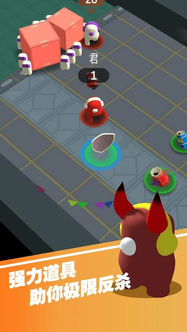 4、收集食物召唤士兵,使用道具反杀,在比赛中吞并食物小兵存活,聚集群众吃掉其他玩家。