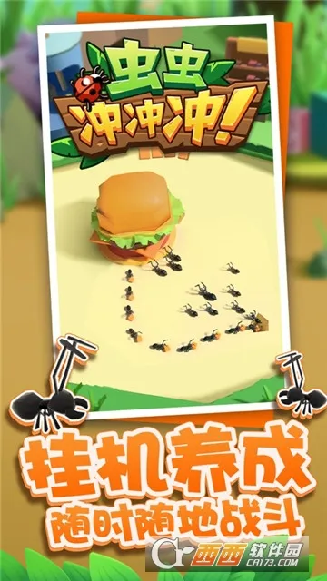 2. 玩家将进入微观世界,和各类昆虫并肩作战,带领昆虫部队对抗敌人守护汉堡。相同昆虫可合成更高星级个体,还能解锁不同种类扩充上阵队伍。