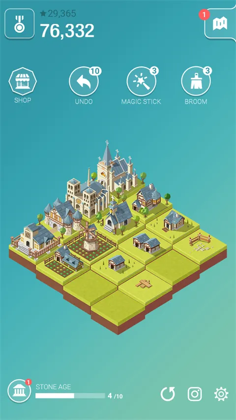 1. 文明演进:从石器时代到太空时代,每次合成解锁新纪元建筑,建筑外观与背景随时代动态变化,配合史诗音乐,打造沉浸式历史穿越体验。