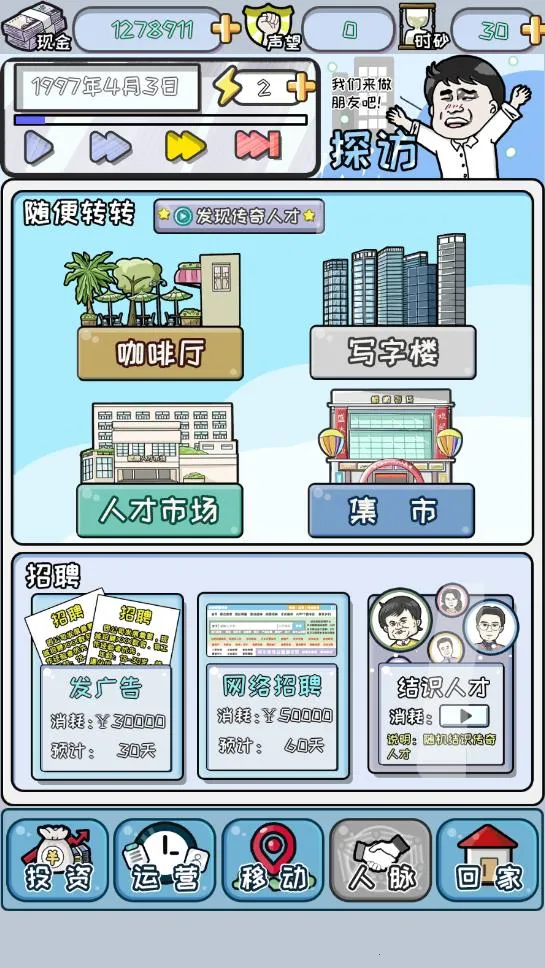3、策略经营决策:玩家需要运用自己的商业头脑和策略,做出正确的经营决策,如选择投资项目、收购公司、招募员工等,以提升自己的企业影响力和财富水平。