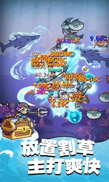 3. 挂机玩法轻松,可尽情在海底叉鱼。