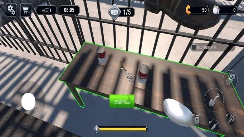 2. 挖掘操作:利用简陋工具从牢房地下开凿逃生通道,注意合理安排时间和体力。