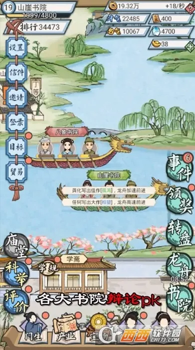2、科举玩法:学生可参加科举,获取功名和奖励,提升书院声誉。考生需通过院试、乡试、会试才能参与殿试,门生的才气与名气属性越高,越容易中榜。