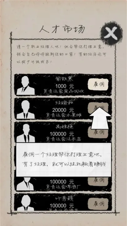 2、产业扩张:可自行挑选扩张各种产业,如收废品、水果摊、酒店、房地产等,有效提高整体规模和收益。