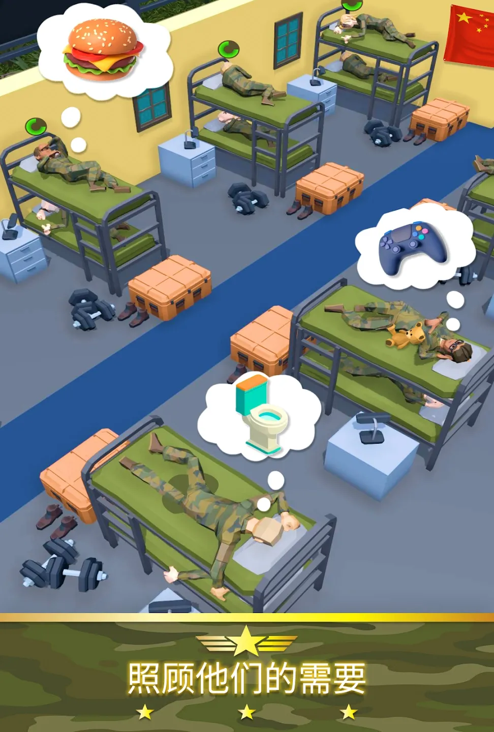 玩家要扮演军队军团大亨,负责建设和扩大驻军。建造各种军事设施,像兵营、训练场、射击场和军械库等,通过这些建筑增强部队实力,提高士兵技能,解锁先进操练技术,将新兵训练成经验丰富的老兵。