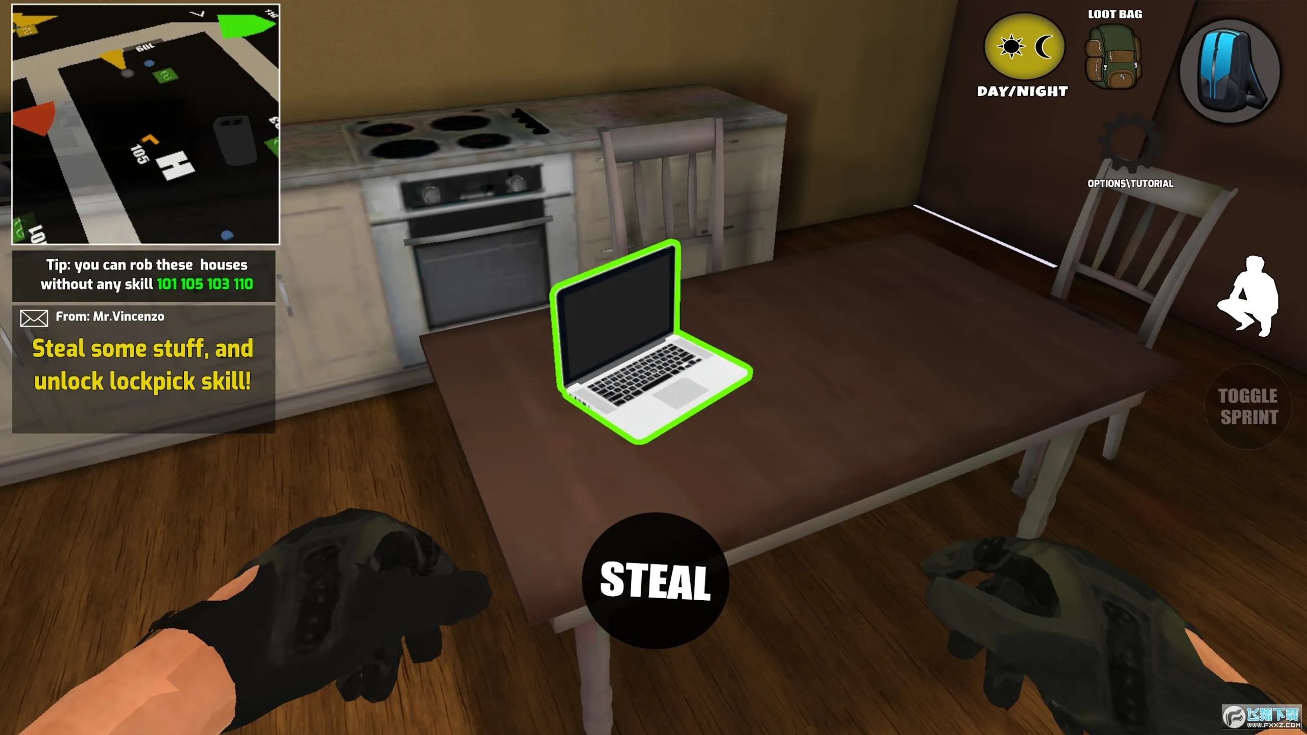 2、玩法独特:每次进入游戏都有不同经历,模拟盗窃很真实。