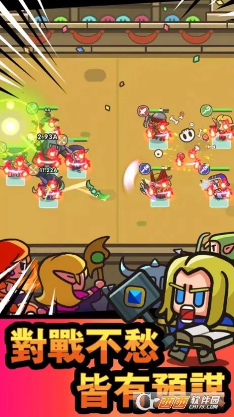 3、多样游戏特色:2D卡通风,角色可爱,能组成多种组合完成最佳队伍,战斗刺激紧张,可凭战略扭转局面;每天开启宝箱探索解锁资源与碎片;有50种以上角色等待解锁,可自定义最强战斗阵容;休闲轻松,自动战斗、自带离线挂机。