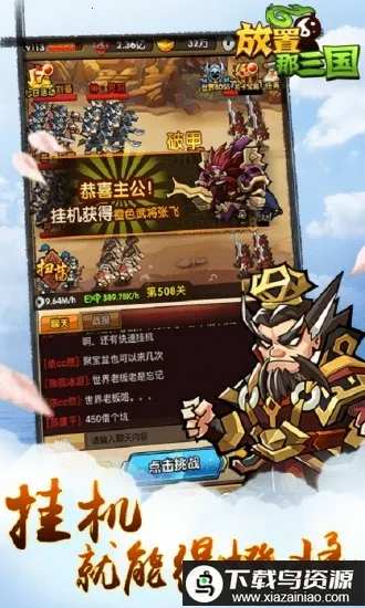 放置那三国是q萌风格的三国放置休闲手游。玩家作为诸侯招兵买马逐鹿中原,可招募名将、与玩家交锋,有武将羁绊等特色。竖屏挂机,稍作经营就能坐收资源,活用策略以弱胜强,快来本站下载体验书写传奇。