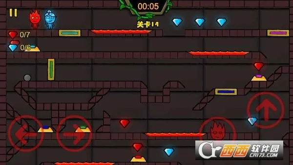 2. 游戏以冰火人为题材,结合双人联机模式,玩家能与亲朋好友一起闯关。场景丰富,关卡众多,利用冰火人属性解开障碍,收集钻石兑换道具。