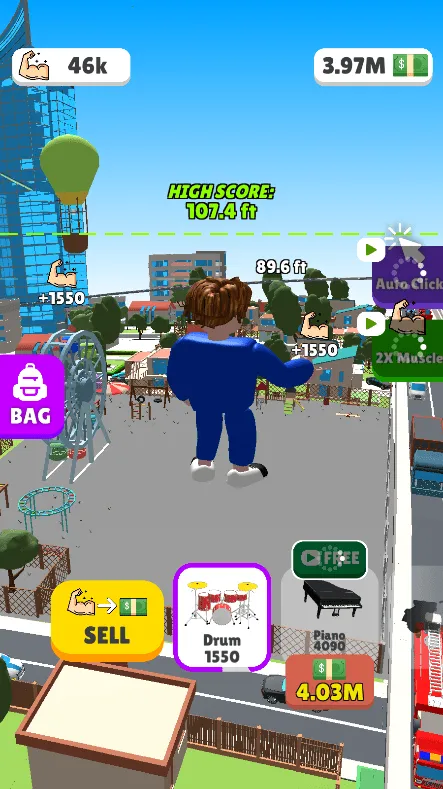 1. 玩法独特:采用放置点击玩法,不停点击屏幕加快角色锻炼速度,积累大量收益,举起各种奇葩道具。