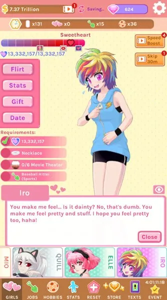 空闲约会是一款休闲模拟游戏,能模拟有趣约会场面。有可爱画风、贴合实际的表情包,操作简单。玩家通过解锁新内容体验乐趣,与超多角色交互,以文字对话推进剧情,有CG插图,语音由人气CV配音,可保存结局随时翻看。