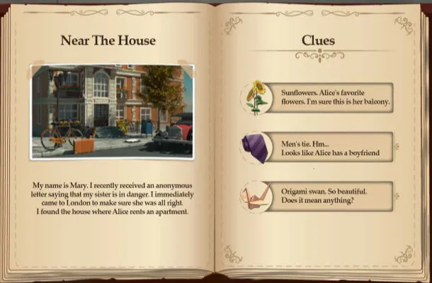 2、拥有数百个手绘场景,每个场景都细腻精致,细节中可能隐藏关键线索,玩家需在其中调查场景、寻找隐藏物体和线索。