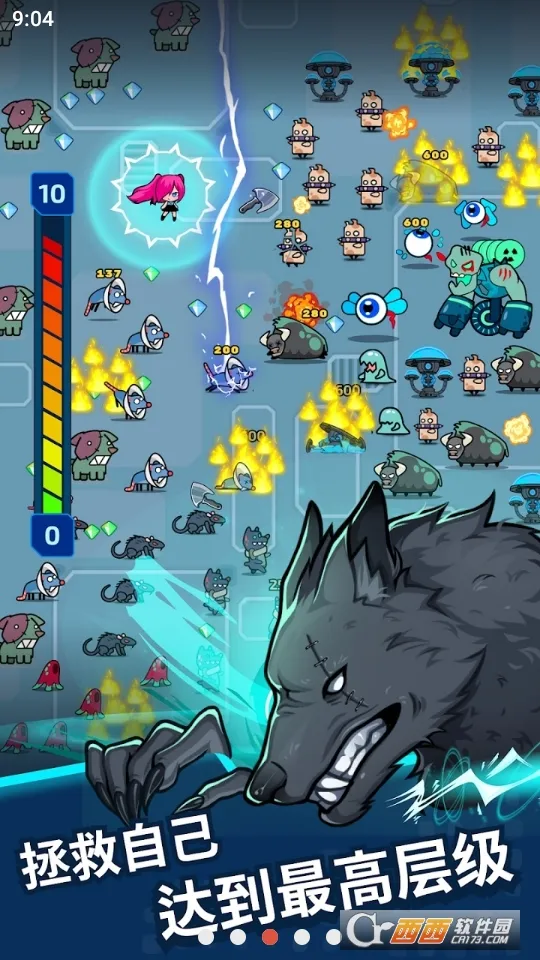 2、肉鸽式成长体系独特,每次升级随机获取武器或属性强化,5星武器可进化终极形态。