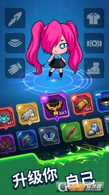 3. 角色养成:通过击败敌人和完成任务获得装备道具提升角色属性能力,升级技能,每次升级有随机选项可搭配武器和属性。